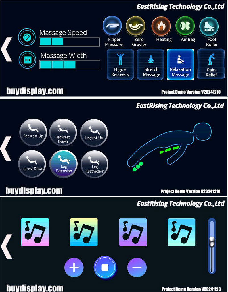 A complete functional demonstration designs the UI of its practical application for the commonly used 24 widgets, totaling over 43 pages. It can run on HMI Display with 800x340 resolutions. Through studying this DEMO, combined with the teaching videos and UI_Editor-II_User_Manual, customers can quickly grasp the usage of these commonly used widgets.