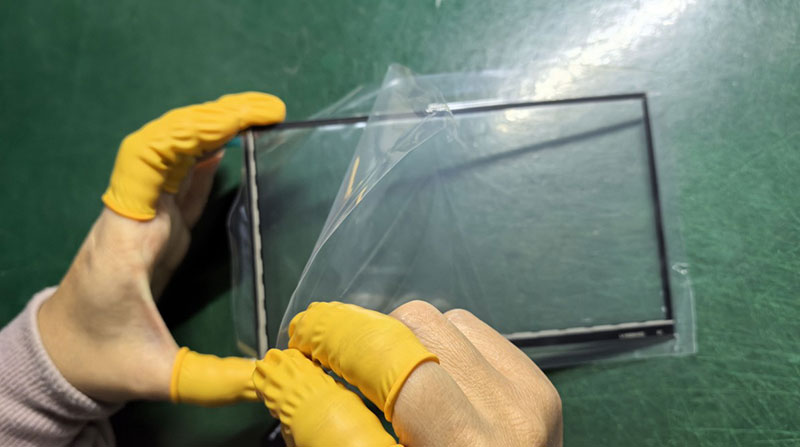 Once perfectly aligned, apply the double-sided tape. We recommend frame-style tape that goes around the border of the display, not the center.Typically, the edges of the touch panel come pre-applied with double-sided tape, ready for immediate assembly. No additional tape is required.